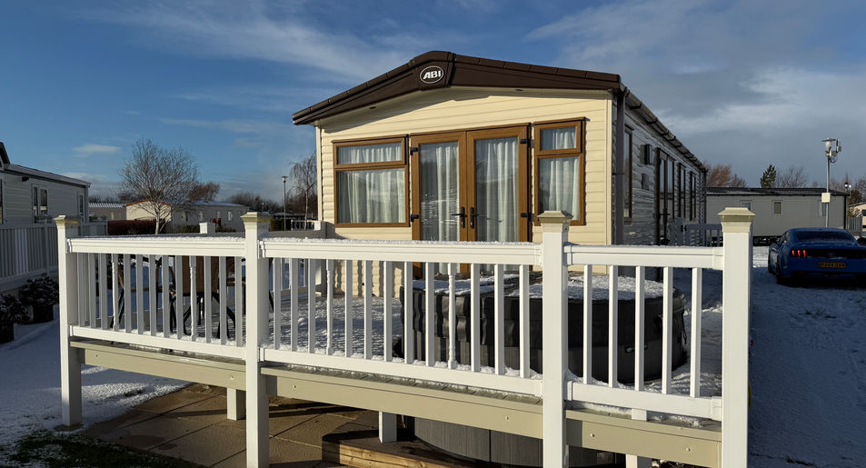 - 8 berth caravan with patio doors leading out onto wrap around decking with hot tub